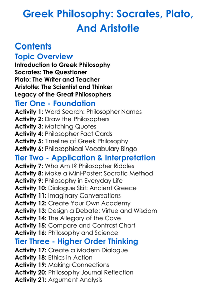 Greek Philosophy Socrates Plato And Aristotle Worksheet Activity Booklet