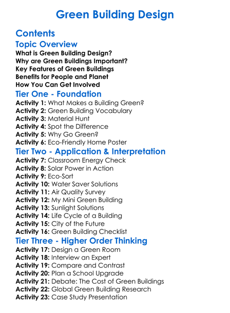 Green Building Design Worksheet Activity Booklet