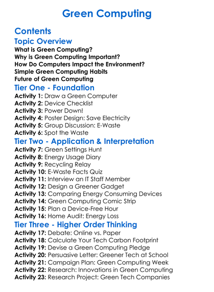 Green Computing Worksheet Activity Booklet