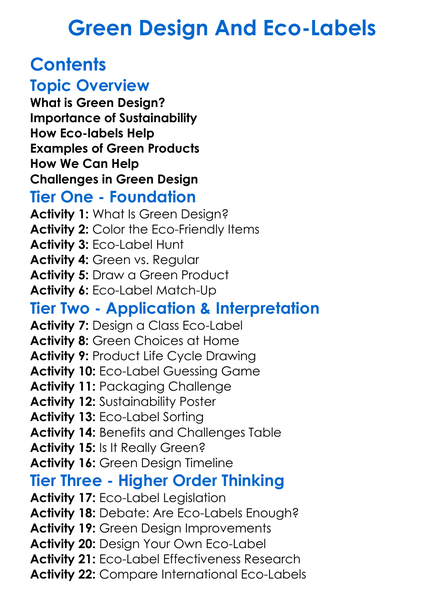 Green Design And Eco-Labels Worksheet Activity Booklet