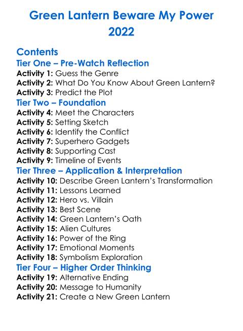 Green Lantern Beware My Power 2022 Worksheet Activity Booklet