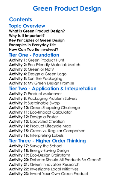 Green Product Design Worksheet Activity Booklet