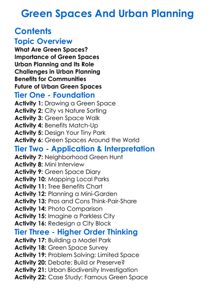 Green Spaces And Urban Planning Worksheet Activity Booklet