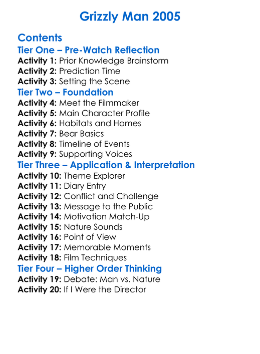 Grizzly Man 2005 Worksheet Activity Booklet