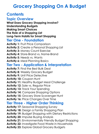 Grocery Shopping On A Budget Worksheet Activity Booklet