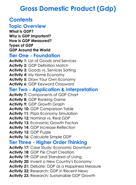 Gross Domestic Product Gdp Worksheet Activity Booklet