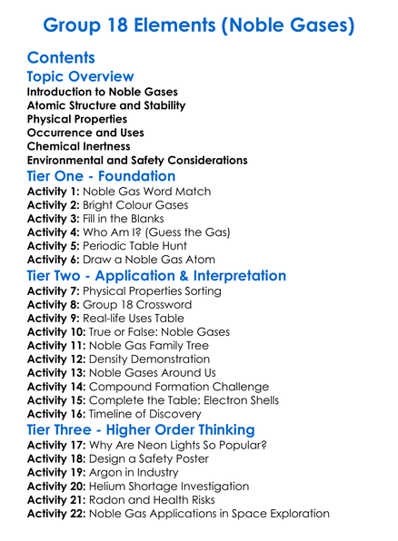 Group 18 Elements Noble Gases Worksheet Activity Booklet