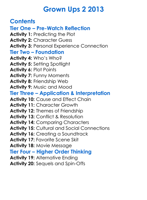 Grown Ups 2 2013 Worksheet Activity Booklet
