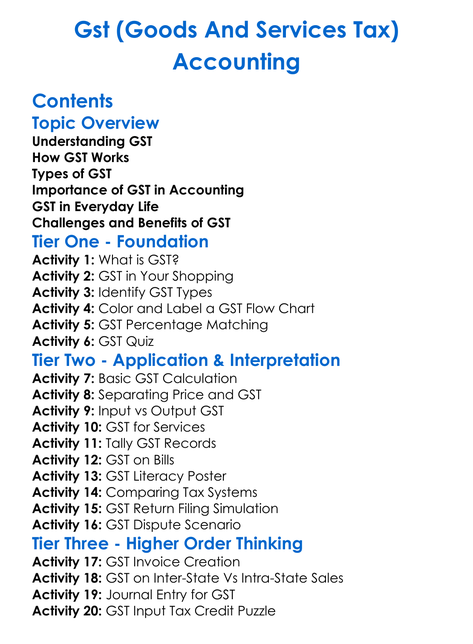 Gst Goods And Services Tax Accounting Worksheet Activity Booklet