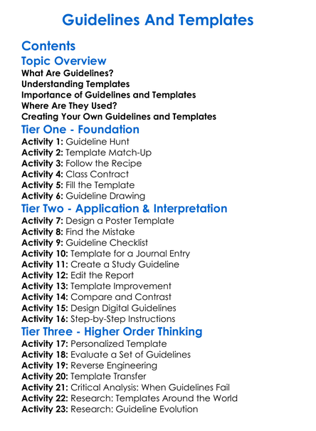 Guidelines And Templates Worksheet Activity Booklet