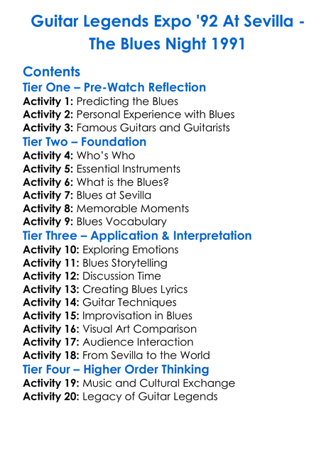 Guitar Legends Expo 92 At Sevilla Worksheet Activity Booklet