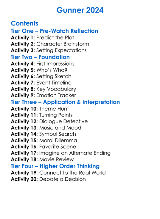 Gunner 2024 Worksheet Activity Booklet