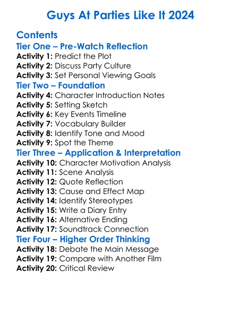 Guys At Parties Like It 2024 Worksheet Activity Booklet