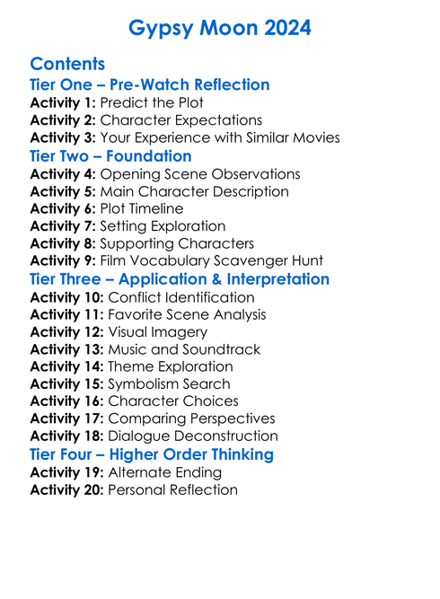 Gypsy Moon 2024 Worksheet Activity Booklet