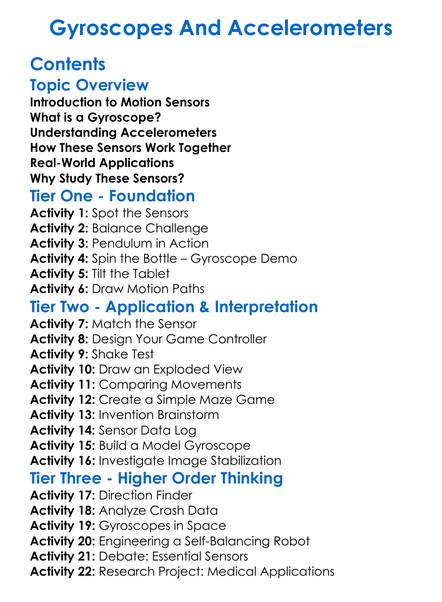 Gyroscopes And Accelerometers Worksheet Activity Booklet