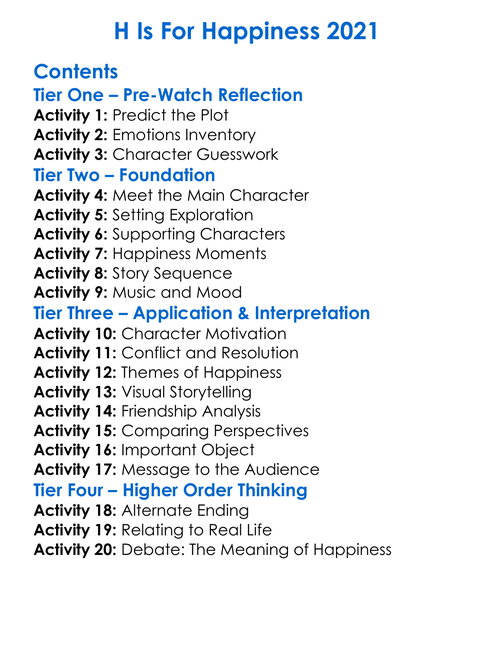 H Is For Happiness 2021 Worksheet Activity Booklet