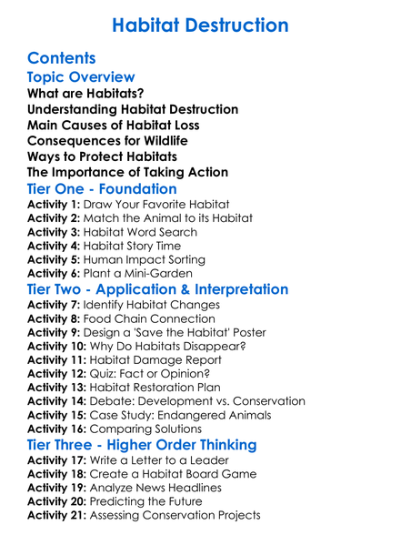 Habitat Destruction Worksheet Activity Booklet
