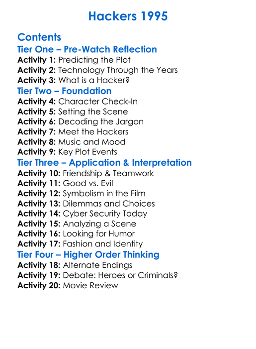 Hackers 1995 Worksheet Activity Booklet