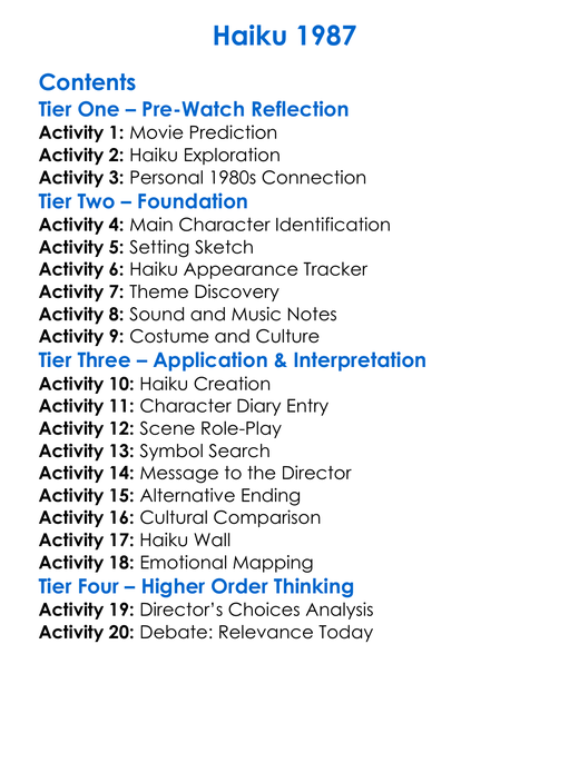 Haiku 1987 Worksheet Activity Booklet