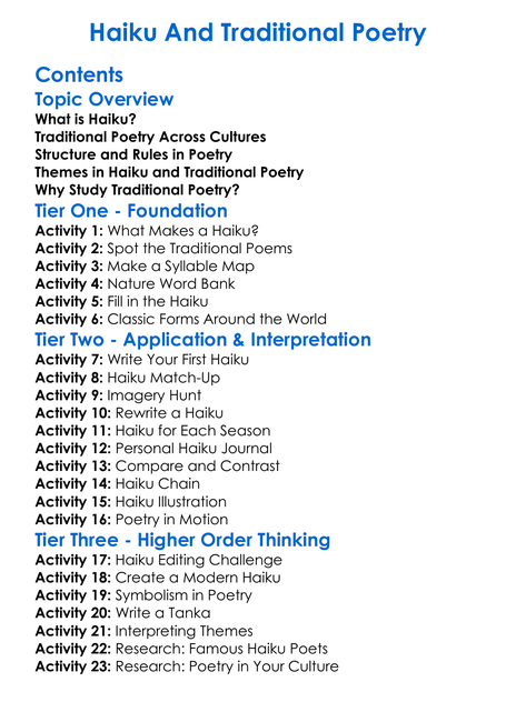 Haiku And Traditional Poetry Worksheet Activity Booklet