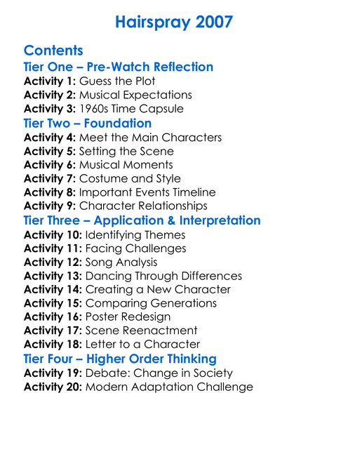 Hairspray 2007 Worksheet Activity Booklet