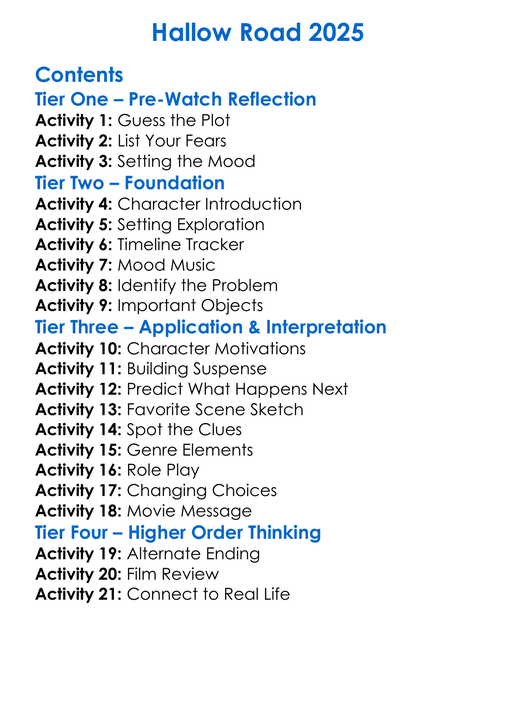Hallow Road 2025 Worksheet Activity Booklet