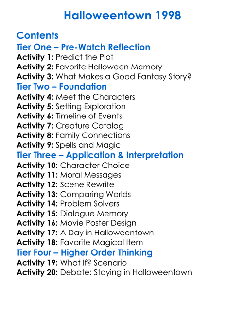 Halloweentown 1998 Worksheet Activity Booklet