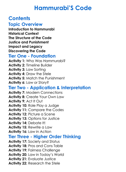 Hammurabis Code Worksheet Activity Booklet