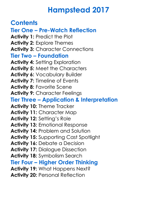 Hampstead 2017 Worksheet Activity Booklet