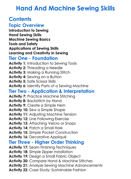 Hand And Machine Sewing Skills Worksheet Activity Booklet