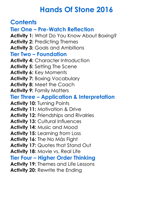Hands Of Stone 2016 Worksheet Activity Booklet