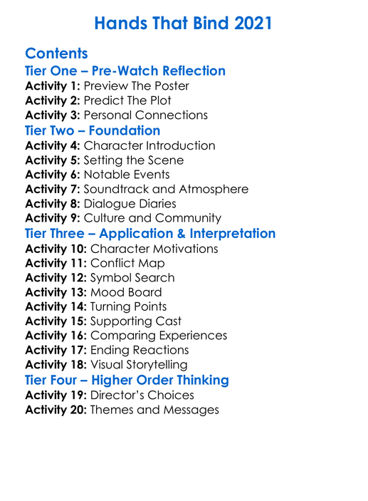 Hands That Bind 2021 Worksheet Activity Booklet
