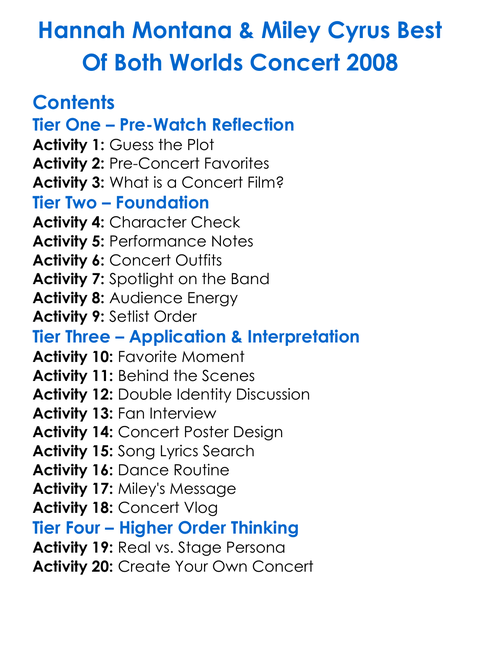 Hannah Montana Miley Cyrus Best Of Both Worlds Concert 2008 Worksheet Activity Booklet