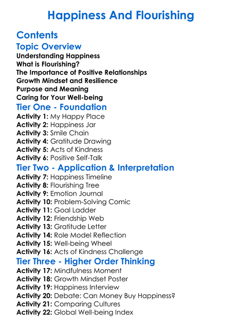 Happiness And Flourishing Worksheet Activity Booklet