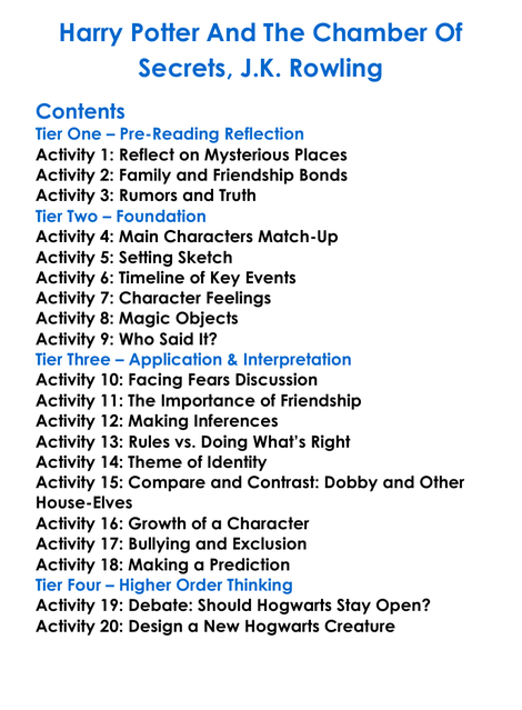Harry Potter And The Chamber Of Secrets Jk Rowling Worksheet Activity Booklet