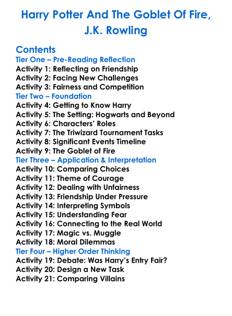 Harry Potter And The Goblet Of Fire Jk Rowling Worksheet Activity Booklet