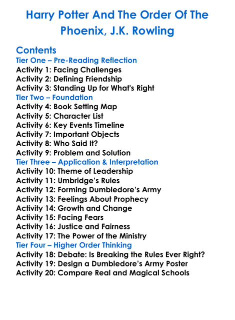 Harry Potter And The Order Of The Phoenix Jk Rowling Worksheet Activity Booklet