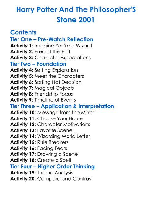 Harry Potter And The Philosophers Stone 2001 Worksheet Activity Booklet