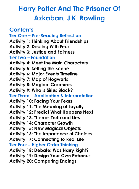 Harry Potter And The Prisoner Of Azkaban Jk Rowling Worksheet Activity Booklet