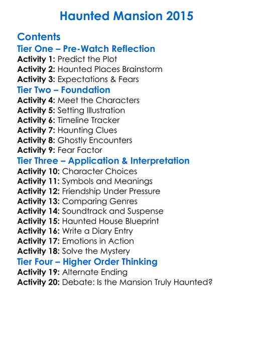 Haunted Mansion 2015 Worksheet Activity Booklet