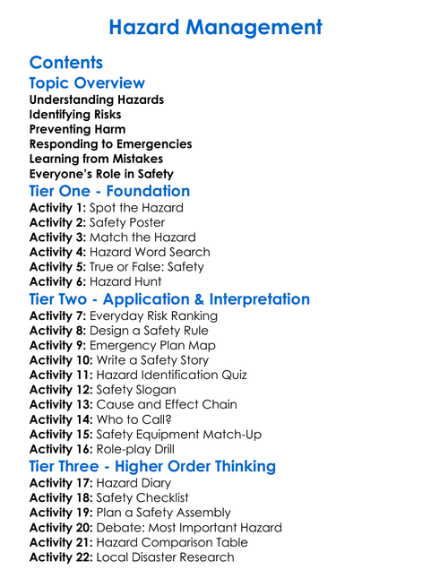 Hazard Management Worksheet Activity Booklet