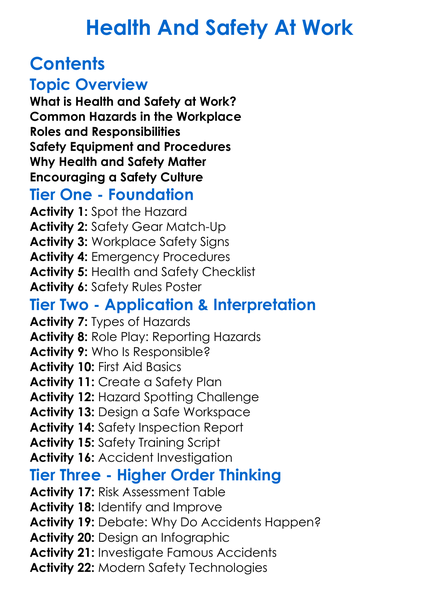 Health And Safety At Work Worksheet Activity Booklet