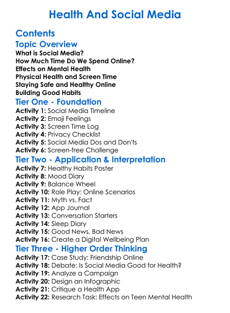 Health And Social Media Worksheet Activity Booklet