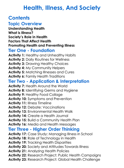 Health Illness And Society Worksheet Activity Booklet