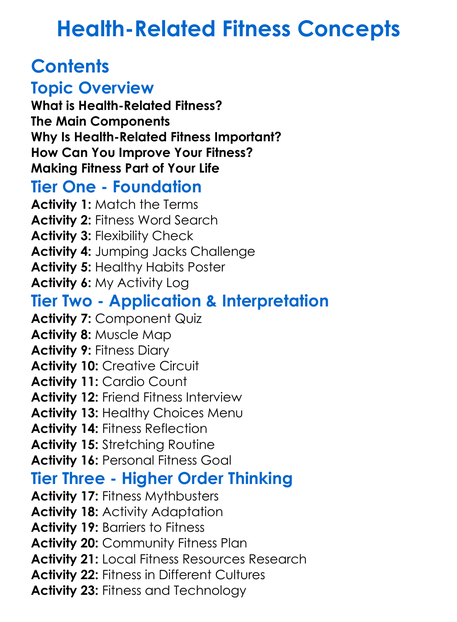 Health-Related Fitness Concepts Worksheet Activity Booklet