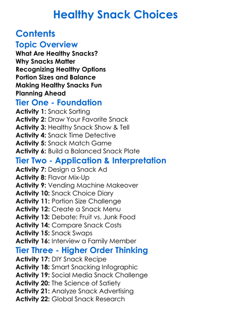 Healthy Snack Choices Worksheet Activity Booklet