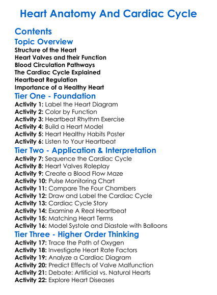 Heart Anatomy And Cardiac Cycle Worksheet Activity Booklet