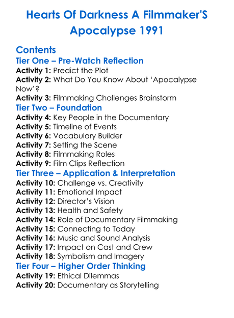 Hearts Of Darkness A Filmmakers Apocalypse 1991 Worksheet Activity Booklet