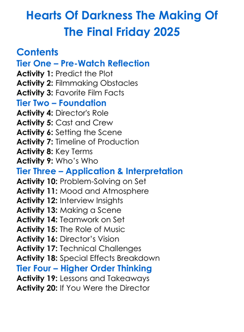 Hearts Of Darkness The Making Of The Final Friday 2025 Worksheet Activity Booklet