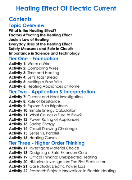 Heating Effect Of Electric Current Worksheet Activity Booklet